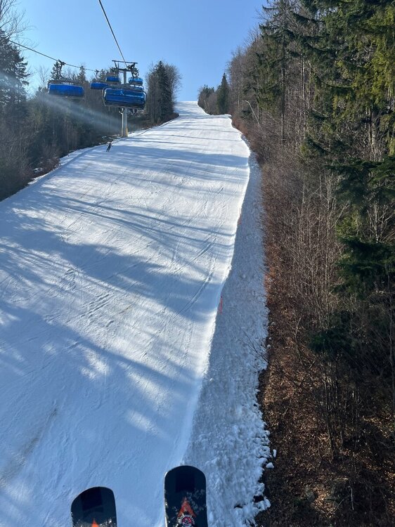 ARossi88 Napisano 18 Grudnia 2017 Udostępnij Napisano 18 Grudnia 2017 Może komuś chce się policzyć ile kosztuje taki halny dla ośrodka typu SON lub na 1ha trasy. (Chyba bylo juz o tym). Myślę że będzie to znaczna pomoc w dyskusji czy coś jest na pokaz czy nie. (Myślę że TMR miał dużo szczęścia ze wyciągi zostały całe - w piątek pomagałem odblokować drogę w mojej okolicy - 30-40m świerka sporo wazy...) Coś kilka dni temu było gdzieś ile koszuje naśnieżenie chyba, mnóstwo wody że oczy wyłażą Tylko że naśnieżanie nijak ma się moim zdaniem do tego czy lance stoją dla potrzeby czy dla pokazu, narazie jest na ich udział za ciepło i tyle. Kto widział co halny porobił na Słowacji to można powiedzieć, że Szczyrk tylko śnieg stracił. Cytuj Odnośnik do komentarza Udostępnij na innych stronach More sharing options... kordiankw Napisano 18 Grudnia 2017 Udostępnij Napisano 18 Grudnia 2017 Jestem obecnie w Szczyrku, widziałem kilka ekip elektryków usuwajacych skutki halnego sprzed tygodnia. Może problem z nasnieżaniem tkwi również w dostawach energii elektrycznej. Chociaż przy dolnej stacji gondoli armata pracowała w południe pełną parą. Cytuj Odnośnik do komentarza Udostępnij na innych stronach More sharing options... ARossi88 Napisano 18 Grudnia 2017 Udostępnij Napisano 18 Grudnia 2017 Jestem obecnie w Szczyrku, widziałem kilka ekip elektryków usuwajacych skutki halnego sprzed tygodnia. Może problem z nasnieżaniem tkwi również w dostawach energii elektrycznej. Chociaż przy dolnej stacji gondoli armata pracowała w południe pełną parą. Co do naśnieżania to problemem jest zbyt mały mróz raczej, na dole armatki idą bo więcej zrobią, na górze zaś z lanc walą bo bardziej mrozi Niech teraz jeszcze setny raz sprawdzą wszystko, żeby nie było wtopy przy otwarciu Cytuj Odnośnik do komentarza Udostępnij na innych stronach More sharing options... mig Napisano 18 Grudnia 2017 Udostępnij Napisano 18 Grudnia 2017 Dobrze ze wzdłuż wyciagow zostały już tylko rachityczne krzaki. ... sporo dróżek w okolicy jeszcze w piątek miało problemy z przejazdem.... Foto 'Beskidomaniacy '. Cytuj Odnośnik do komentarza Udostępnij na innych stronach More sharing options... Mitek Napisano 19 Grudnia 2017 Udostępnij Napisano 19 Grudnia 2017 Co do naśnieżania to problemem jest zbyt mały mróz raczej, na dole armatki idą bo więcej zrobią, na górze zaś z lanc walą bo bardziej mrozi Niech teraz jeszcze setny raz sprawdzą wszystko, żeby nie było wtopy przy otwarciu Cześć Na jakiej podstawie tak twierdzisz? Pozdrowienia Cytuj Odnośnik do komentarza Udostępnij na innych stronach More sharing options... kordiankw Napisano 19 Grudnia 2017 Udostępnij Napisano 19 Grudnia 2017 Dojazd do dolnej stacji gondolki prawie na gotowo Wysłane z iPhone za pomocą Tapatalk Cytuj Odnośnik do komentarza Udostępnij na innych stronach More sharing options... ARossi88 Napisano 19 Grudnia 2017 Udostępnij Napisano 19 Grudnia 2017 Cześć Na jakiej podstawie tak twierdzisz? Pozdrowienia Szczyrkowski właśnie niedawno o tym gdzieś pisał, poza tym z tego co mi wiadomo lance najlepiej się sprawdzają od ok -8 st. a armatki chyba już od -4st., fakt są wydajniejsze ale zżerają więcej prądu niż wody Cytuj Odnośnik do komentarza Udostępnij na innych stronach More sharing options... bubol.T Napisano 19 Grudnia 2017 Udostępnij Napisano 19 Grudnia 2017 Naśnieżają głównie niebieskie trasy ,chyba na Golgotę trzeba będzie poczekać dłużej , 7 pewnie też nie zdążą na otwarcie ,a szkoda ,bo rozładowałaby ruch, budujące jest to ,że w końcu będzie można pojeździć trasą 1 do Czyrnej częściej niż raz na dwa lata Cytuj Odnośnik do komentarza Udostępnij na innych stronach More sharing options... ARossi88 Napisano 19 Grudnia 2017 Udostępnij Napisano 19 Grudnia 2017 Naśnieżają głównie niebieskie trasy ,chyba na Golgotę trzeba będzie poczekać dłużej , 7 pewnie też nie zdążą na otwarcie ,a szkoda ,bo rozładowałaby ruch, budujące jest to ,że w końcu będzie można pojeździć trasą 1 do Czyrnej częściej niż raz na dwa lata 25396066_1861171853958018_2695207762129783975_n.jpg Według raportu trasy 1,3,4,10 powinny być otwarte. Można liczyć na pogodę, bo ma zacząć nieźle sypać, może coś więcej otworzą Cytuj Odnośnik do komentarza Udostępnij na innych stronach More sharing options... kordiankw Napisano 19 Grudnia 2017 Udostępnij Napisano 19 Grudnia 2017 Info ze strony SMR: „Szczyrk, 19.12.2017 r. To już pewne! Otwieramy ośrodek 22.12.2017 r. Utrzymują się ujemne temperatury, dzięki czemu sprzęt naśnieżający może pracować na pełnych obrotach. Na trasy wyruszyły ratraki. Już w najbliższy piątek zapraszamy narciarzy i snowboardzistów na jazdę na naszych nowych trasach Szczyrk Mountain Resort. Miło nam poinformować, że ośrodek będzie czynny w okresie świątecznym. W Wigilię 24.12. jeździmy od 8:30 do 15:00, a 25.12. od 8:30 do 16:00. Pierwsza jazda wieczorna będzie 26.12.2017 r. W Nowy Rok 01.01.2018 r. otwieramy ośrodek od 9:30. „ I mapka naśnieżania : Wysłane z iPhone za pomocą Tapatalk Cytuj Odnośnik do komentarza Udostępnij na innych stronach More sharing options... bodex4 Napisano 19 Grudnia 2017 Udostępnij Napisano 19 Grudnia 2017 Info ze strony SMR: „Szczyrk, 19.12.2017 r. To już pewne! Otwieramy ośrodek 22.12.2017 r. Utrzymują się ujemne temperatury, dzięki czemu sprzęt naśnieżający może pracować na pełnych obrotach. Na trasy wyruszyły ratraki. Już w najbliższy piątek zapraszamy narciarzy i snowboardzistów na jazdę na naszych nowych trasach Szczyrk Mountain Resort. Miło nam poinformować, że ośrodek będzie czynny w okresie świątecznym. W Wigilię 24.12. jeździmy od 8:30 do 15:00, a 25.12. od 8:30 do 16:00. Pierwsza jazda wieczorna będzie 26.12.2017 r. W Nowy Rok 01.01.2018 r. otwieramy ośrodek od 9:30. „ I mapka naś
