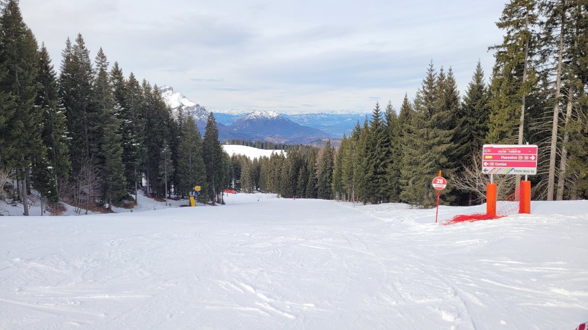 Dzień 4 - Dziś oddalone o 11km Lavarone. Czarna trasa i jedna czerwona nieczynne (jeszcze nie przygotowane). Do 13 raczej pochmurno, potem słońce.