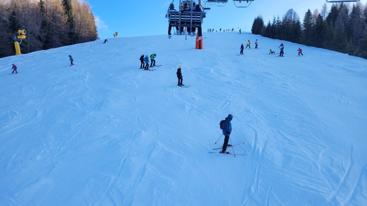 Dzień 3 - kotłują armatami i śnieg przybywa. Wszystkie czerwone trasy są naprawdę porządne i jest po czym jechać. Pogoda nadal fajowa. Dużo klubów, ale stoki tu mają takie petardy, że nawet jak ustawią 3 slalomy na połowie trasy (trenują juniorzy, kadeci i młodzicy), to pozostała część trasy wystarcza spokojnie na jazdę pełnym łukiem dla nart FIS r30.
