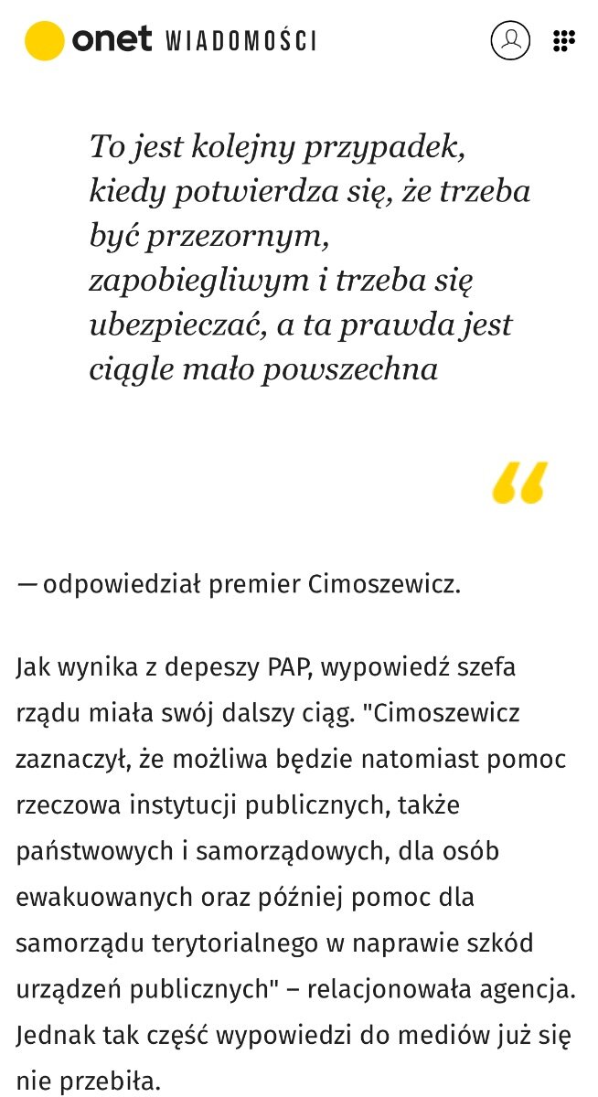 mig Napisano 14 Września 2024 Udostępnij Napisano 14 Września 2024 9 godzin temu, grimson napisał: wypowiadasz się jak Carex w 1997r. Jesli vhodzi o "slynną" wypowiedz prem Cimoszewicza, to jak ją przeczytac w oryginale, to mozna ją uznac za bardzo delikatną, wyważoną i w dodatku sluszną. Niestety w PL polityke kreują polglówki z mediow, ktore zamiast podrążyć temat typu - dlaczego tyle domow stoi na terenach w oczywisty sposob zalewowych - naskoczyly na premiera za wymyslony brak empatii. Byla okaxja to przypierdolic drugiej stronie, w d... majac meritum... Przy okaxji celowosci budowy zbiornikow - Raciborz dolny juz raz na pewno uratowal opolskie przed powaxna powodzią. Można spokojnie przyjac ze juz się zaplacil. 2 Cytuj Odnośnik do komentarza Udostępnij na innych stronach More sharing options...